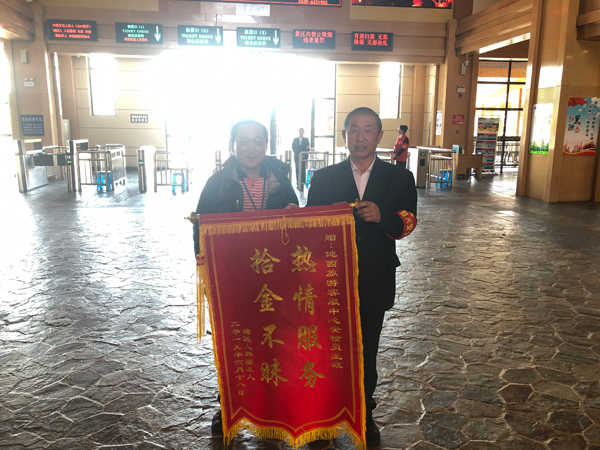6月24日,池西游客服務中心副經(jīng)理王金鵬又接待了一位前來贈送錦旗的游客。因為安檢員王波在6月13日,拾到一部三星手機,并及時上交,通過多方了解才知道,失主是一位韓國游客,手機的及時歸還也為該游客省去了很多不必要的麻煩。所以,委托旅行社贈送錦旗一面,稱贊王波拾金不昧的精神。同時這也是這個月里池西游客服務中心第二次有游客贈送錦旗,這是對景區(qū)員工優(yōu)質(zhì)服務高度的認可與贊揚。