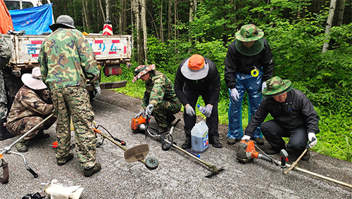 每年的6、7月份,都能在長白山的西景區(qū)和南景區(qū)看到這樣的一支隊(duì)伍。他們身穿迷彩服裝,手持割草機(jī)械,忙碌的在公路兩側(cè)和停車場清割野草,他們就是公司景區(qū)運(yùn)營三部的“割草小分隊(duì)”。
