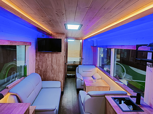 與此同時(shí),北景區(qū)也正如火如荼地進(jìn)行房車升級改造建設(shè)。面對房車改造這個(gè)陌生的領(lǐng)域,北、西景區(qū)檢修部聯(lián)合后勤保障部立即組織精干力量,投入到緊張的房車改造建設(shè)中。翻視頻、查資料、畫圖紙,檢修團(tuán)隊(duì)每天晚上研究探討至深夜,翌日天明就立即投入到緊鑼密鼓地施工中,三十多個(gè)日夜,周而復(fù)始……,每一顆隱藏的螺絲、每一處平滑的包角,全力以赴地?fù)屪シ寇嚫脑祉?xiàng)目工期,傾注了集體的辛勞與智慧。目前,4臺老舊車輛內(nèi)飾已換裝成為高端旅游度假房車,既提高了閑置資源的利用效率,又豐富了托管景區(qū)的旅游產(chǎn)品,并于9月18日全面完成改造,交付白山湖仁義景區(qū)使用。
