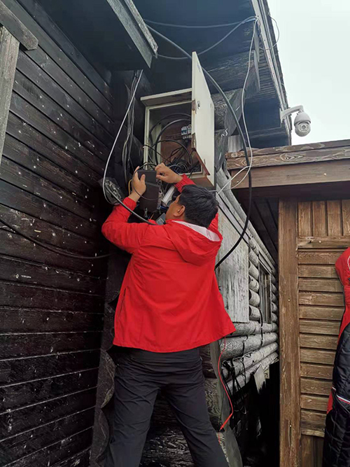 特別是在冬季,他們還要頂住刺骨的寒風(fēng)和冰雪的洗禮。一個小小的室外故障,往往都需要用幾個小時挖開堅硬的冰雪凍層,才能進(jìn)行維修。2019年1月24日,主峰光纖傳輸線路出現(xiàn)故障,他們第一時間扛起維修工具,從海拔2600多米的主峰開始往山下測尋斷點,他們邊走邊挖、邊挖邊測,在厚厚的積雪中深一腳淺一腳地行走了7公里,飛舞的雪花染白了他們的衣帽,潔白的冰霜掛滿了他們的眉睫,遠(yuǎn)遠(yuǎn)望去,宛如一個個會活動的雪人。最終,他們在一個積雪兩米多深的山坳處,鎖定了斷點的位置,他們用尖鎬刨開了厚厚的冰雪凍層,運維工程師徐澎成跪在雪地上,赤手進(jìn)行維修作業(yè),當(dāng)時的氣溫零下30多度,寒風(fēng)像針一樣刺進(jìn)了他的指骨,盡管手腳已被凍得麻木,不聽使喚,可他們憑借頑強的意志和忘我的工作精神,完成了這次艱苦的搶修任務(wù)。
